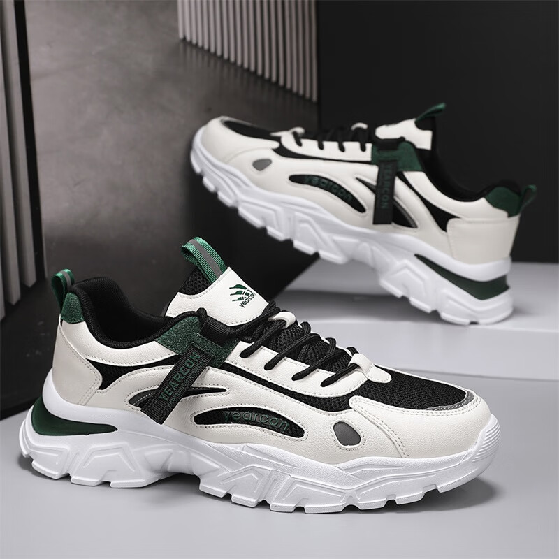 意尔康男鞋休闲鞋新款网面透气厚底增高百搭运动青年学生鞋子 白/黑 42