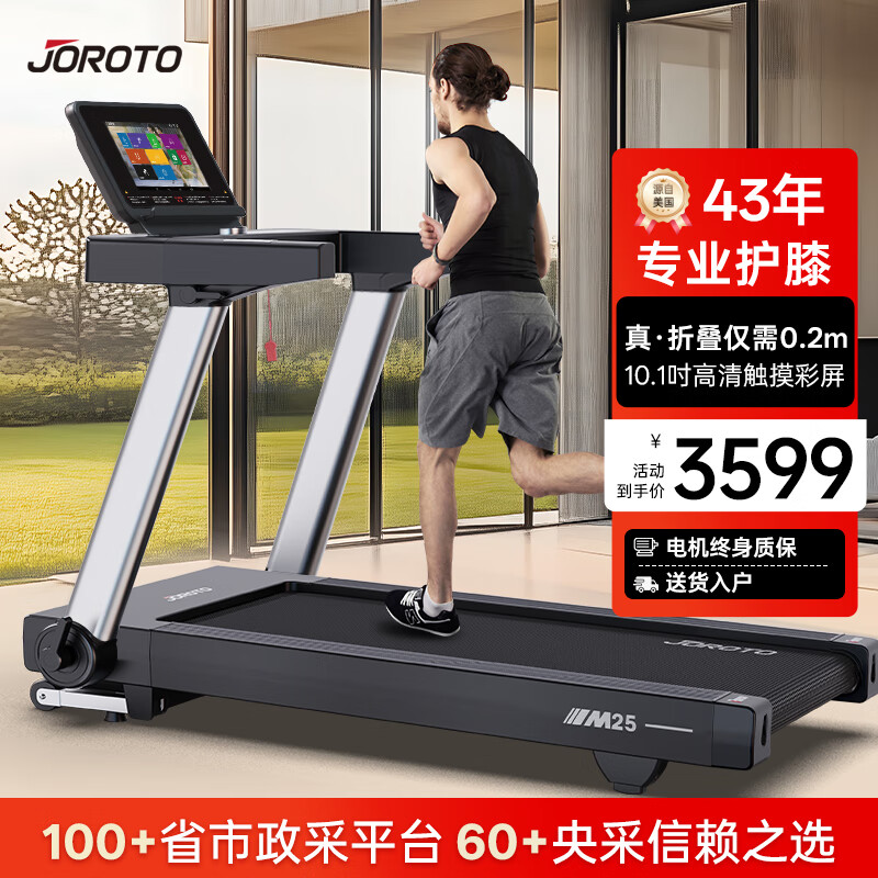 捷瑞特(JOROTO)跑步机家庭用可折叠爬坡减震走步机健身房专业运动健身器材M25 300斤承重/15档坡度/高清彩屏