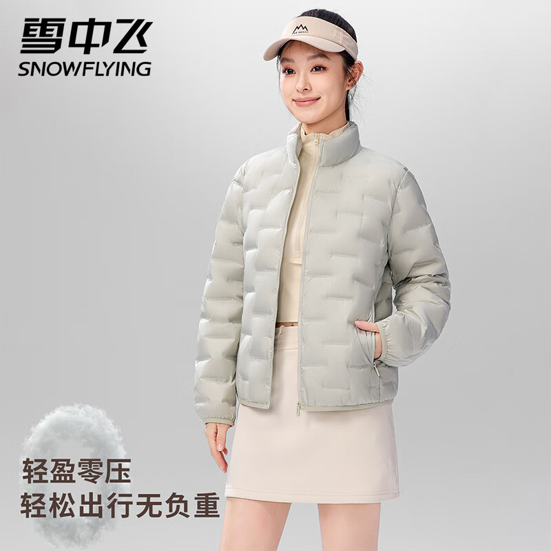雪中飞时尚女士轻薄羽绒服立领保暖百搭羽绒内胆薄外套 浅草绿M