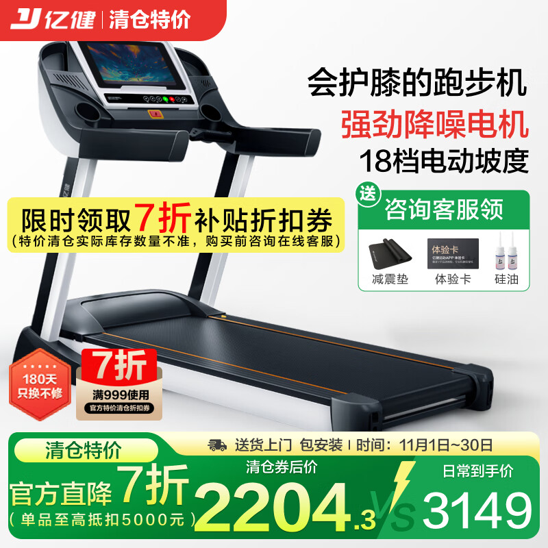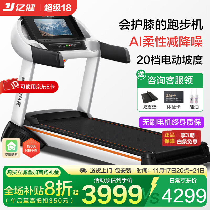 亿健(YIJIAN)跑步机家庭用降噪小型可折叠走步机轻商用级跑步机室内健身器材E3 彩屏款多-精钢底架/AI柔性减震