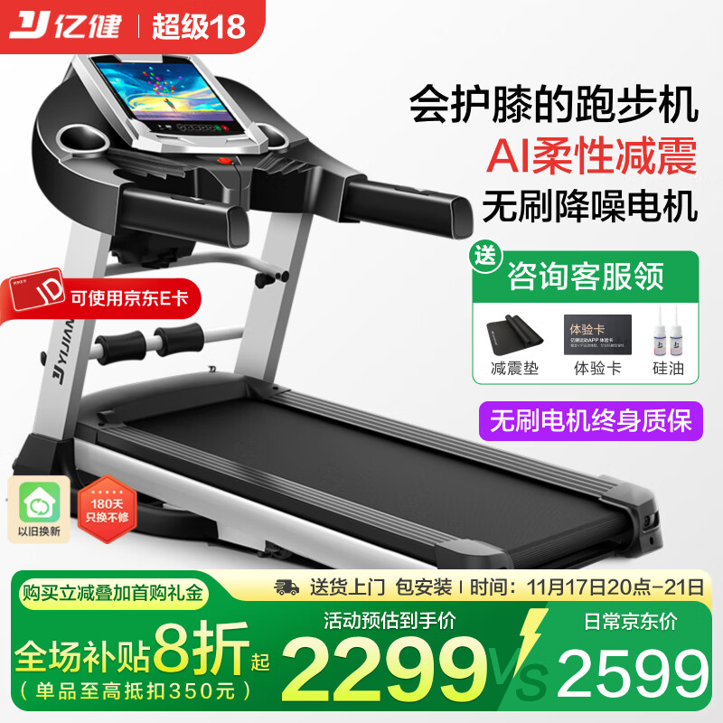 亿健跑步机家庭用18档电动坡度折叠降噪减震运动健身器材【特价】8096 10.1吋彩屏多功能/260斤大承重