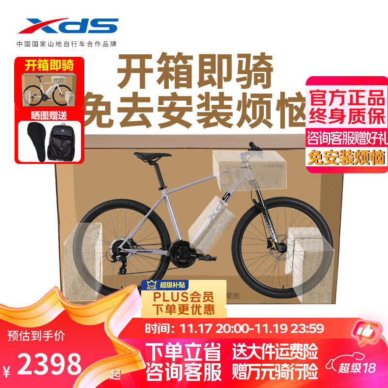 喜德盛(xds)山地车2025款逐日500铝架桶轴24速变速27.5大轮径油刹入门山地车 25款-藕灰粉19寸 【开箱即骑】