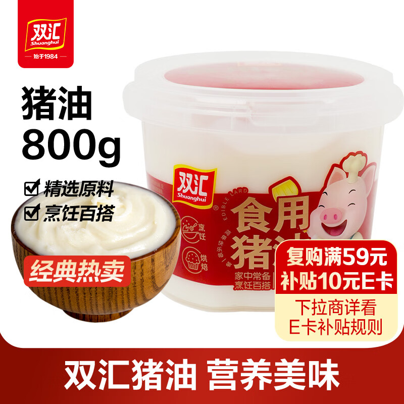 双汇食用猪油800g 食用油板油猪油炒菜拌面拌饭增香 烘培起酥食用油