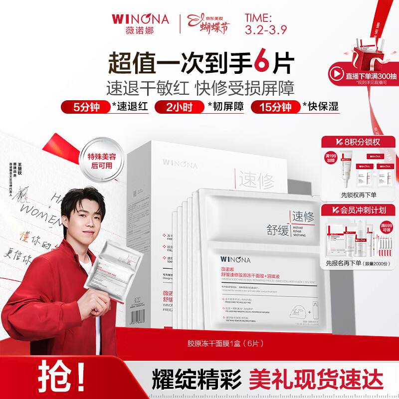 薇诺娜【钦选同款】舒缓速修胶原冻干面膜6片修护护肤女神节礼物