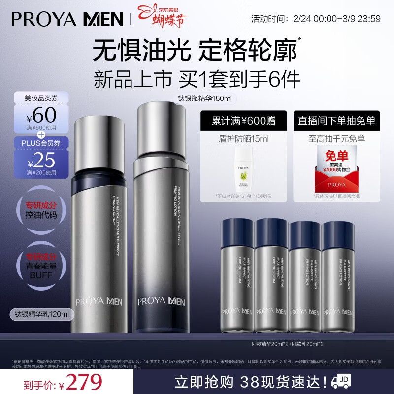 珀莱雅(PROYA)男士全新钛银水乳两件套 抗皱紧致男士护肤品套装 生日礼物送男友