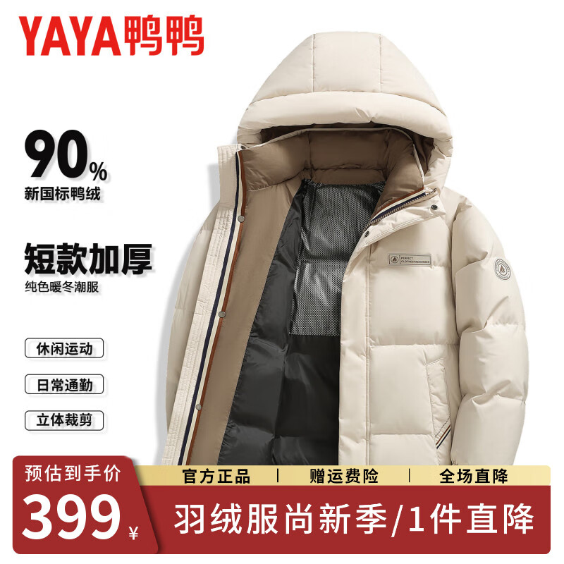 鸭鸭羽绒服男士短款连帽宽松2025加厚保暖冬季青年休闲工装防寒外套男