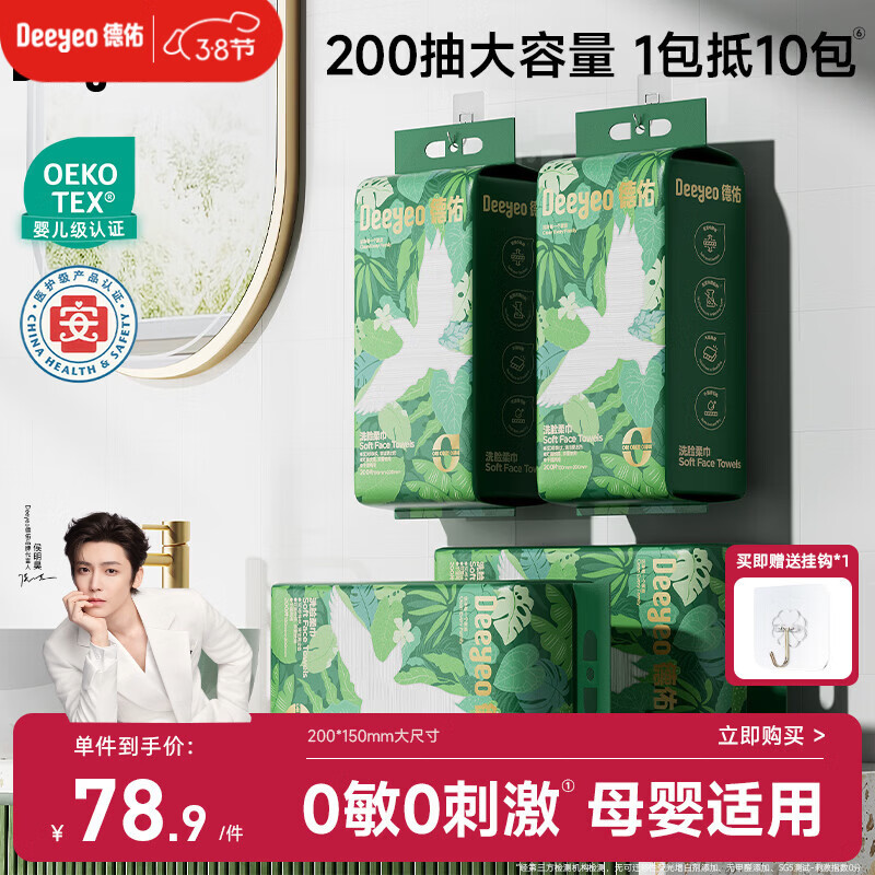 德佑洗脸巾飞鸟壁挂式200抽*4提一次性婴儿棉柔洁面绵柔巾200*150mm
