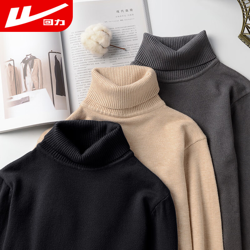 回力毛衣男冬季高领保暖针织衫男宽松套头毛线衣百搭运动打底衫男装