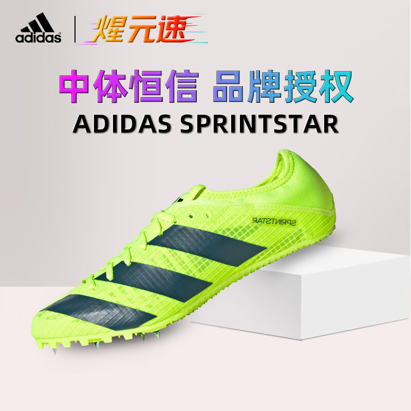 阿迪达斯(adidas)煋元速Sprintstar半掌蝉翼田径短跑钉鞋男女专业训练四项比赛钉鞋 浅绿色 IE6870 40.5