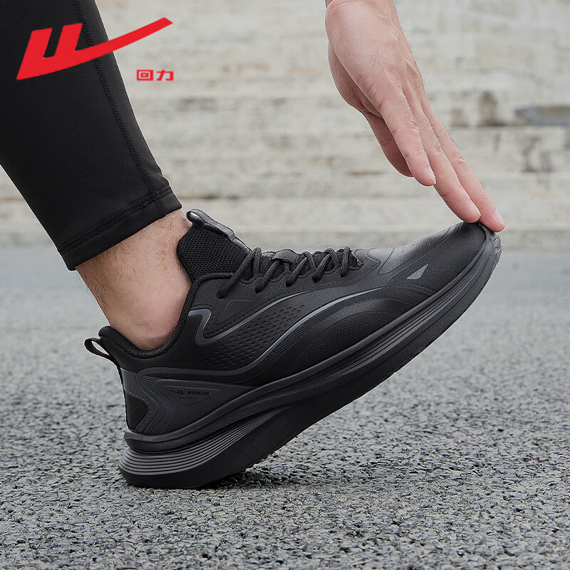回力官方运动男鞋秋冬季皮面轻便软底情侣跑步鞋 1207 暗夜黑 43