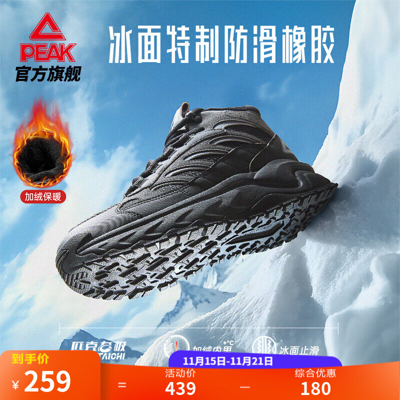 匹克态极征途耐磨舒适户外鞋大棉增高加厚棉鞋百搭登山休闲鞋 冰上止滑-黑色/帕洛玛灰-男-大棉 42