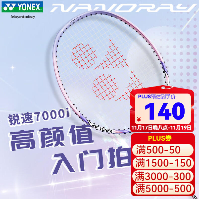 YONEX尤尼克斯羽毛球拍 yy初学入门碳素复合羽毛球拍单拍 NR7000i薰衣草 入门单拍