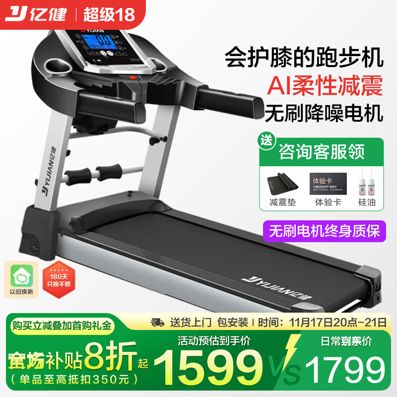 亿健(YIJIAN)跑步机家庭用降噪小型可折叠走步机轻商用级跑步机室内健身器材E3 无底座/蓝屏多功能/柔性减震