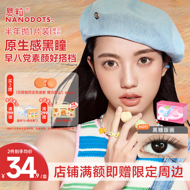 moody美瞳半年抛1片悬粒碳水系列彩色隐形眼镜 黑莓油画 0度 BARBIE
