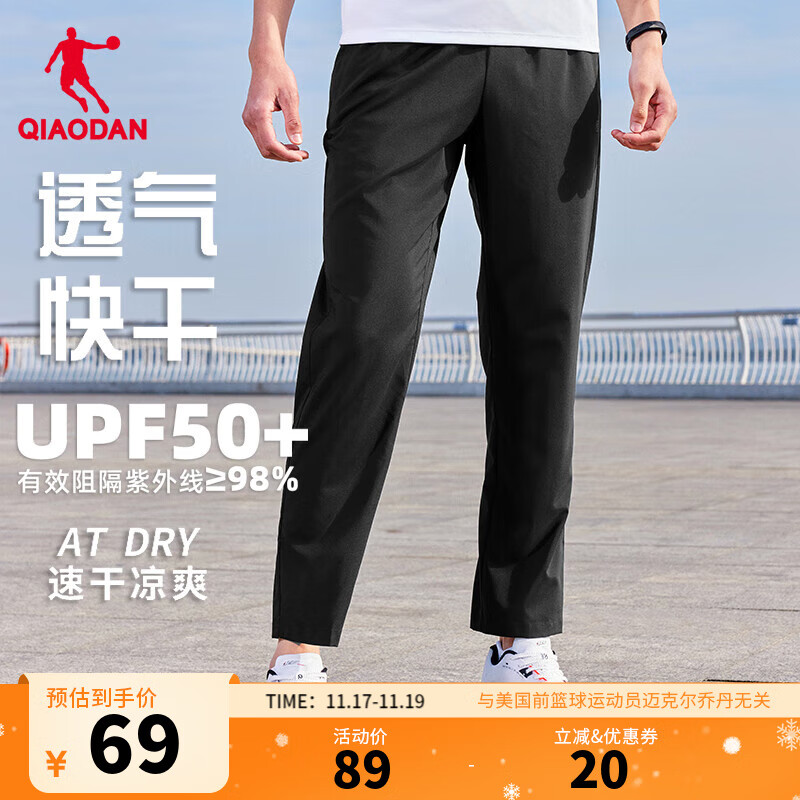 乔丹运动裤男休闲裤子男夏季透气速干冰丝防晒梭织直筒长裤 黑色 M