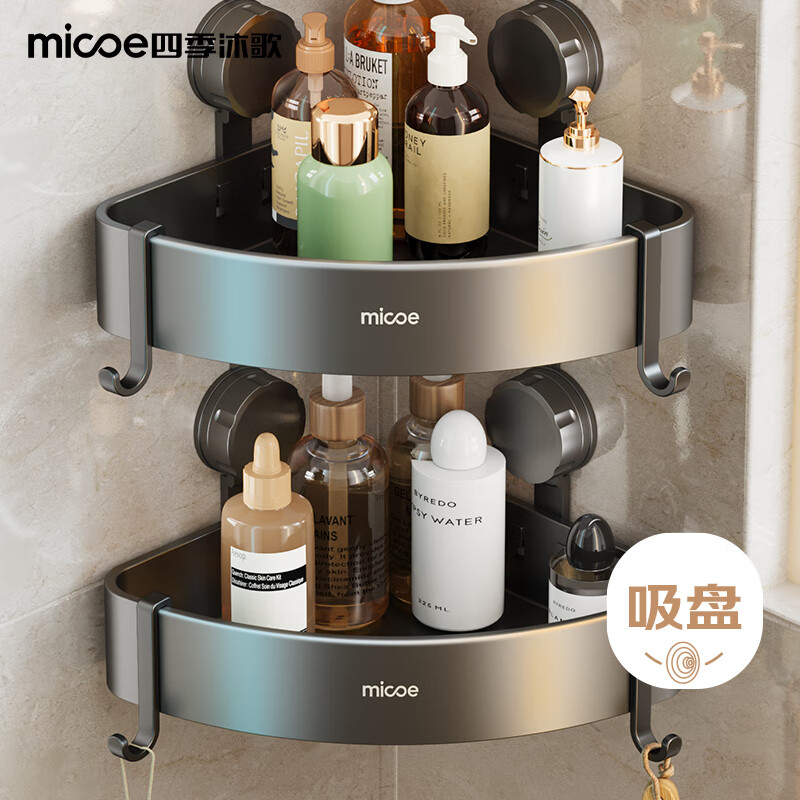 四季沐歌(MICOE)浴室置物架三角太空铝免打孔转角墙角厕所卫生间吸盘置物架 1个