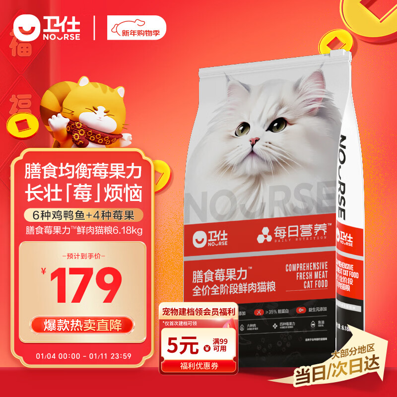 卫仕每日营养猫干粮膳食莓果力全价全阶段鲜肉猫粮6.18kg