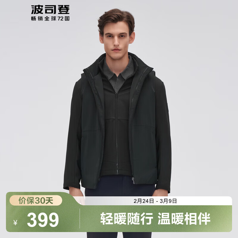 波司登(BOSIDENG)【断码清仓】奥莱秋轻薄鹅绒羽绒服男商务立领时尚宽松保暖外套 墨岩绿4455 S 170/88A