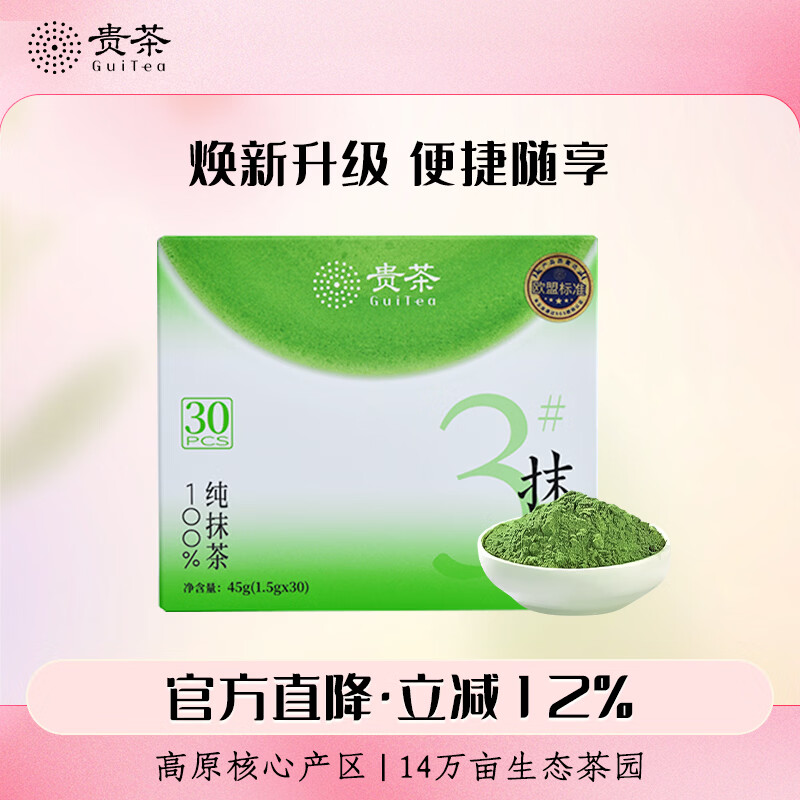 贵茶 抹茶粉1.5g*30条 贵州铜仁纯抹茶粉直饮 代餐酸奶碗燕麦调饮