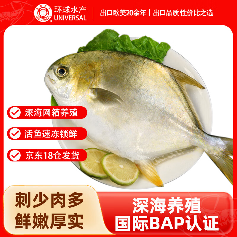 环球水产南海大金鲳鱼550g1条 BAP认证 海鱼水产 生鲜鱼类 火锅 烧烤海鲜