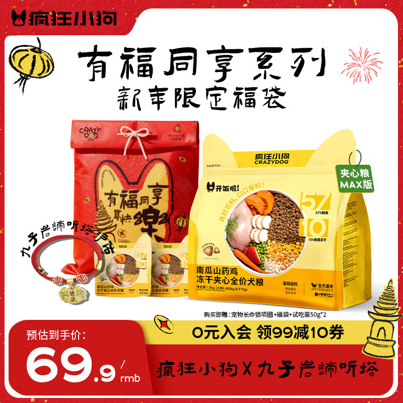 疯狂小狗开饭啦冻干夹心狗粮比熊中小型幼成犬通用南瓜山药鸡1.5kg/3斤
