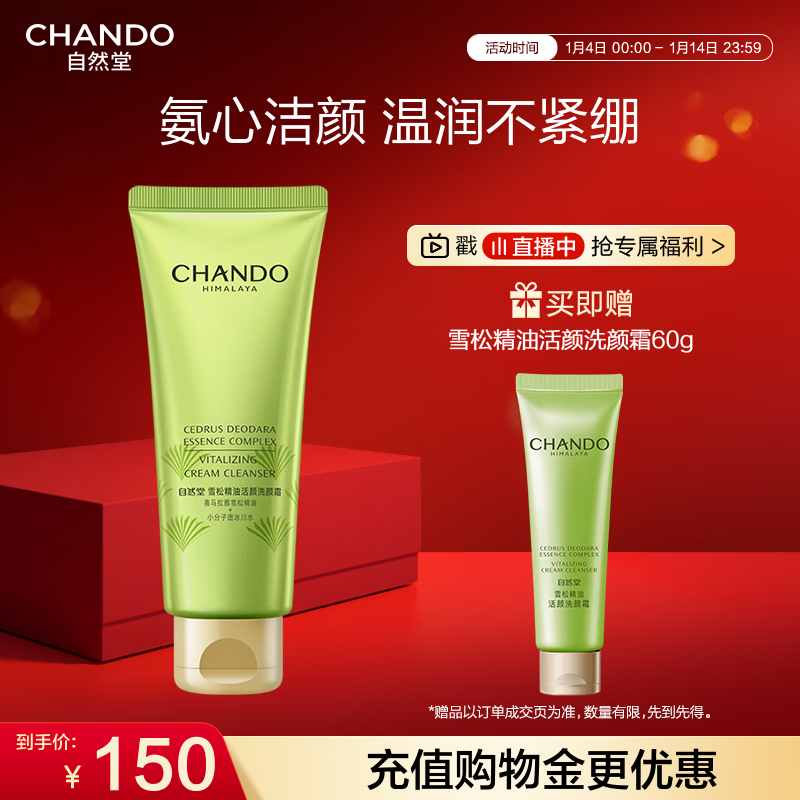 自然堂雪松精油活颜洗颜霜150g(氨基酸洁面温润舒适深层净澈)