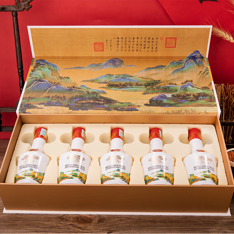 五粮浓香五粮液股份公司出品 浓香型白酒 过年送礼年货礼盒婚宴喜酒 52度 100mL 5瓶 江山如画