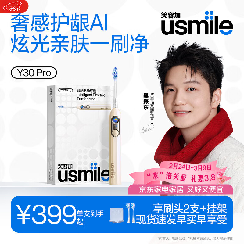 usmile笑容加智能电动牙刷 AI智能化新动力大摆幅 Y30PRO琉璃金 情侣送男女友生日礼物 新年礼物
