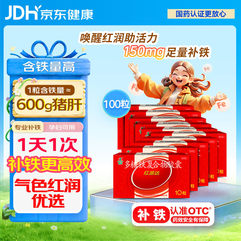 国风红源达多糖铁复合物胶囊0.15g*10粒*10盒 孕期补铁哺乳期女性儿童补铁经期补铁年货节