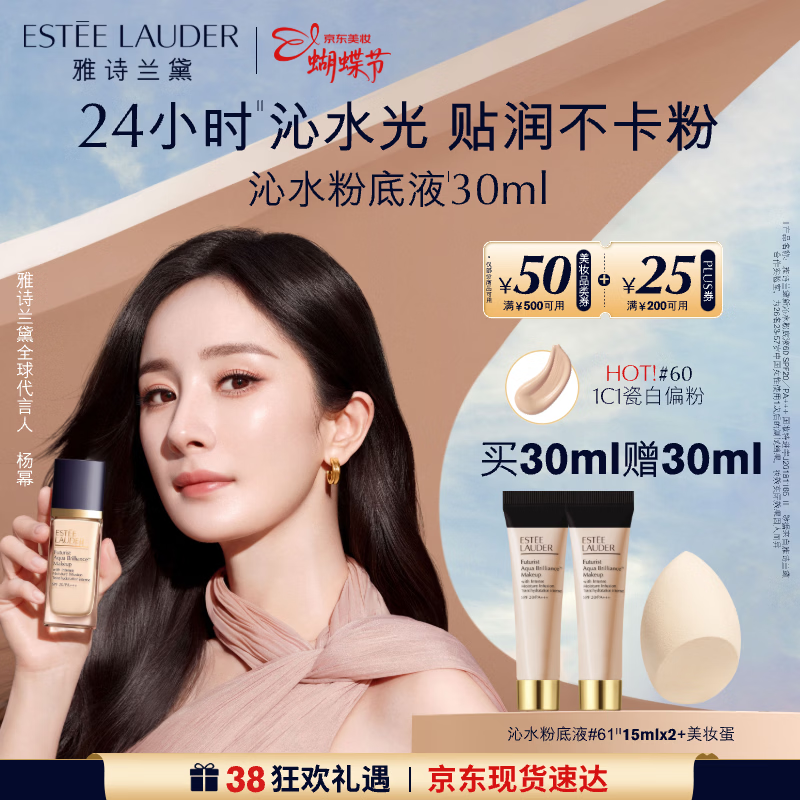 雅诗兰黛沁水粉底液60#瓷白偏粉(1C1)30ml干皮化妆品三八节女神生日礼物