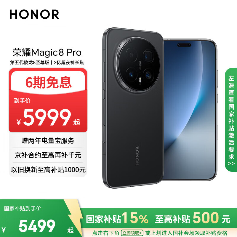 荣耀Magic8 Pro 12+512 绒黑色 第五代骁龙8至尊版 2亿超夜神长焦 双3D解锁 5G AI手机 国家补贴