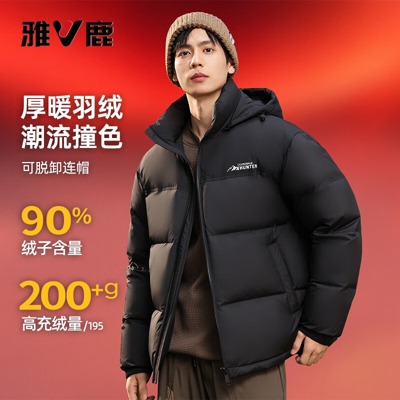 雅鹿【高充绒203G】羽绒服男士加厚2025冬季新款连帽短款面包服外套男