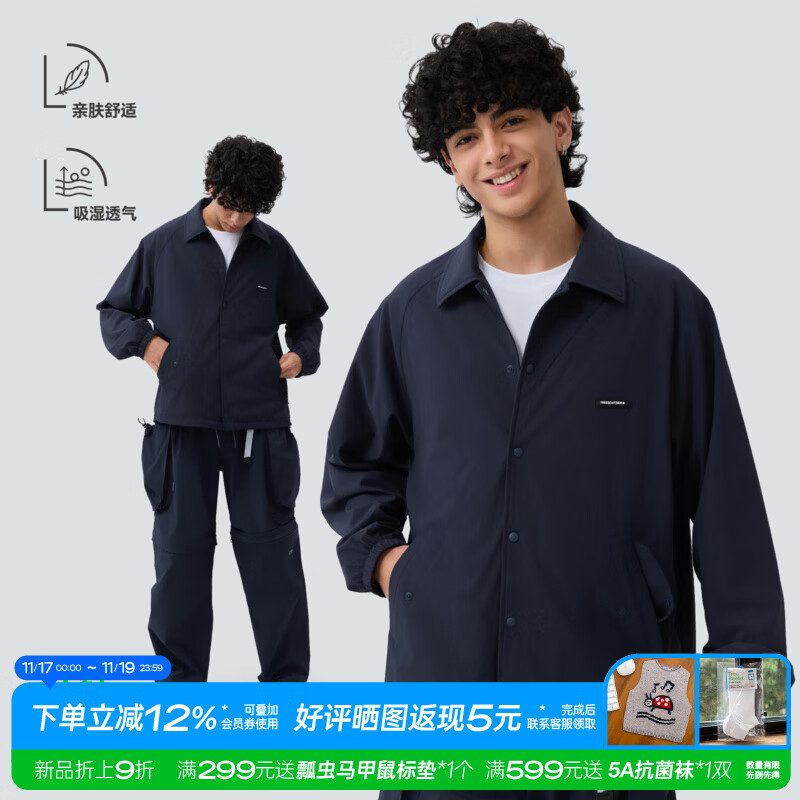 warmtreesTreesOutside吸湿透气教练夹克休闲夹克外套男2025新款宽松百搭 藏青色 L