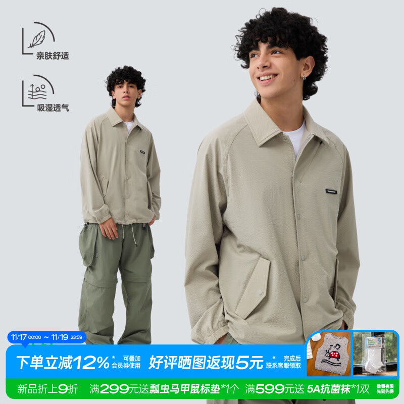 warmtreesTreesOutside吸湿透气教练夹克休闲夹克外套男2025新款宽松百搭 卡其色 M