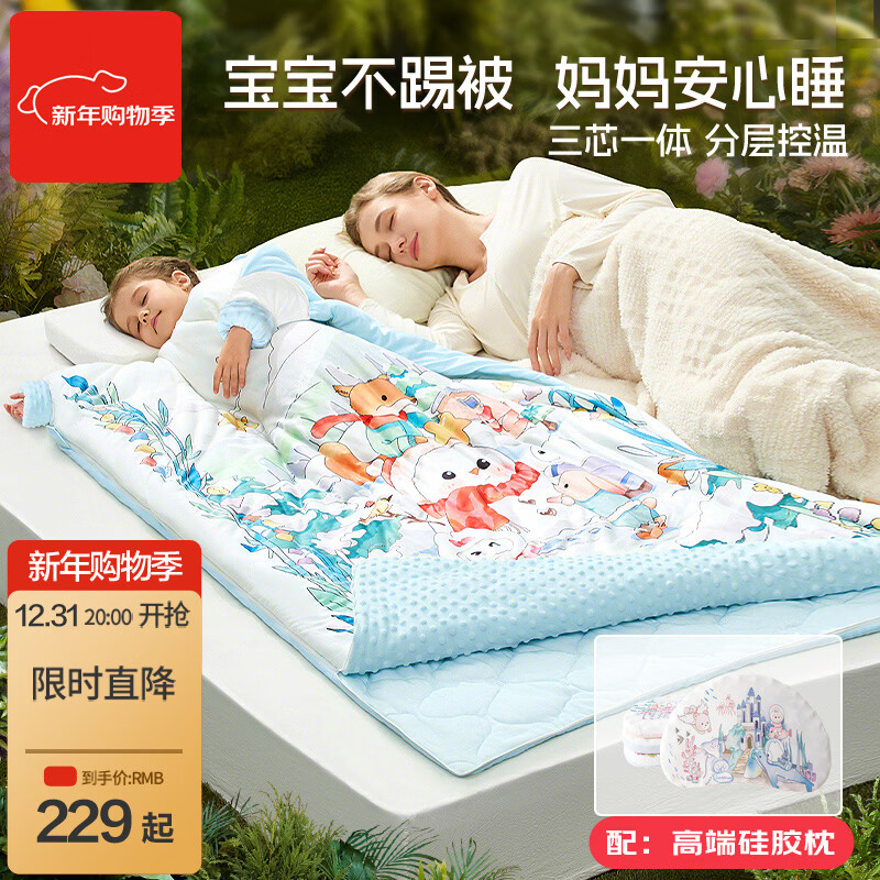 卡伴【吉娜同款】儿童防踢被冬加厚保暖蚕丝羊毛恒温睡袋 黄色 75*140