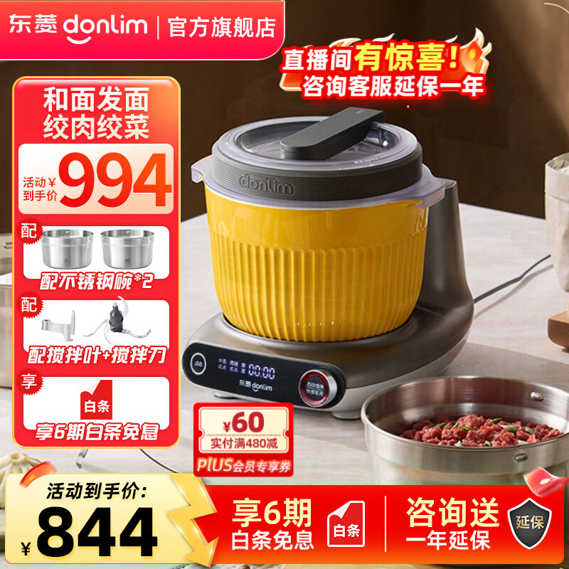 东菱(Donlim)和面机家用厨师机多功能绞肉机揉面一体发酵打蛋器绞馅料理全自动面食机磁吸新年会送礼物品 DL-1349(和面绞肉绞菜)