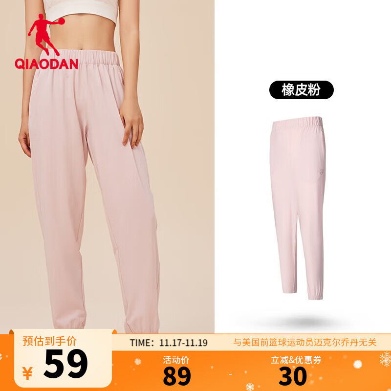 乔丹QIAODAN运动裤女夏季梭织运动裤健身瑜伽裤休闲薄款裤子 橡皮粉 XL
