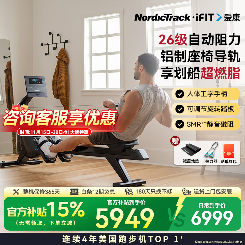 爱康(ICON)美国划船机RW300 家庭用折叠静音磁控室内划艇体重管理健身器材 【支持iFIT实景划船】 现货直发包安装