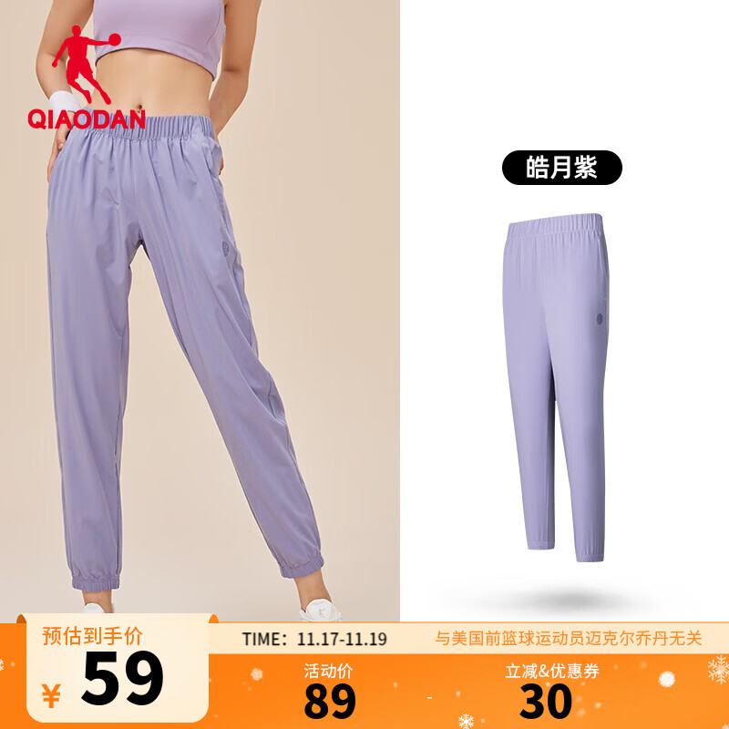 乔丹QIAODAN运动裤女夏季梭织运动裤健身瑜伽裤休闲薄款裤子 皓月紫 L