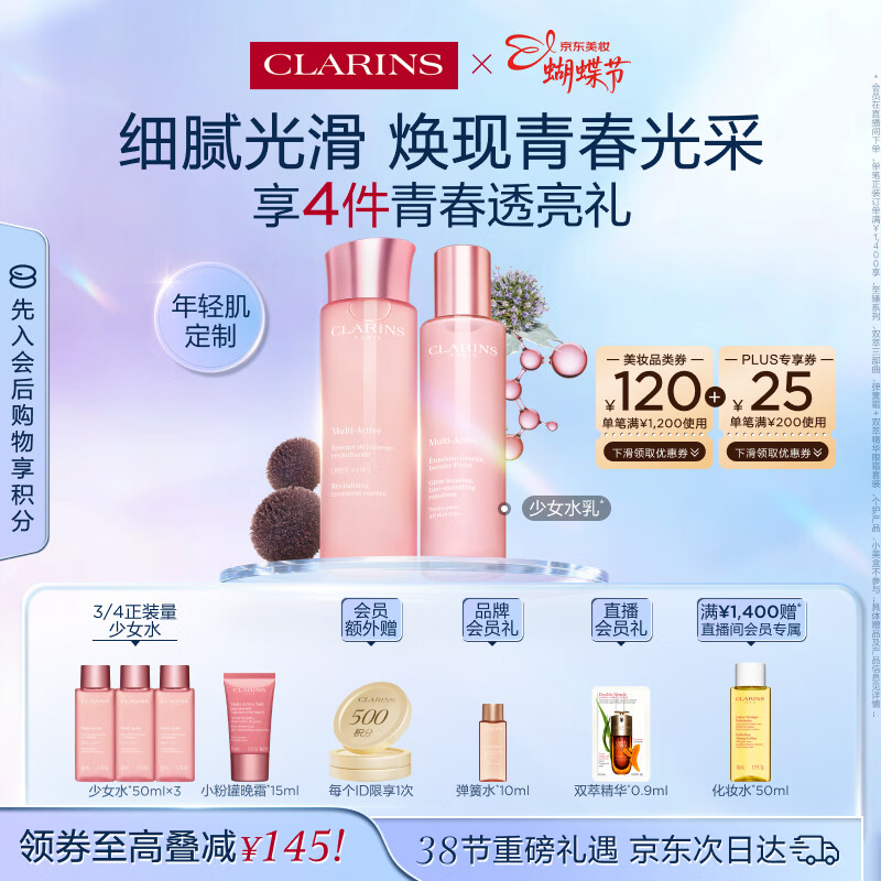 娇韵诗青春少女水200ml+乳液100ml弹润护肤品化妆品38女神节礼物