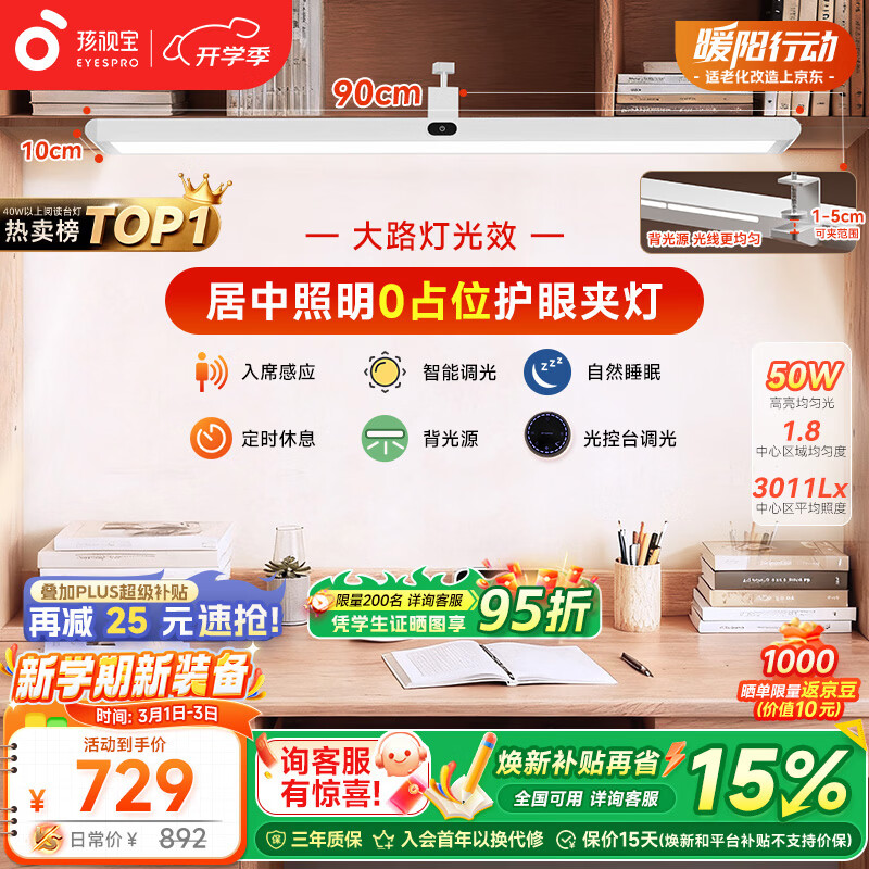 孩视宝夹式护眼台灯学生学习桌面吊柜大路灯儿童全光谱壁挂书架灯G-50W
