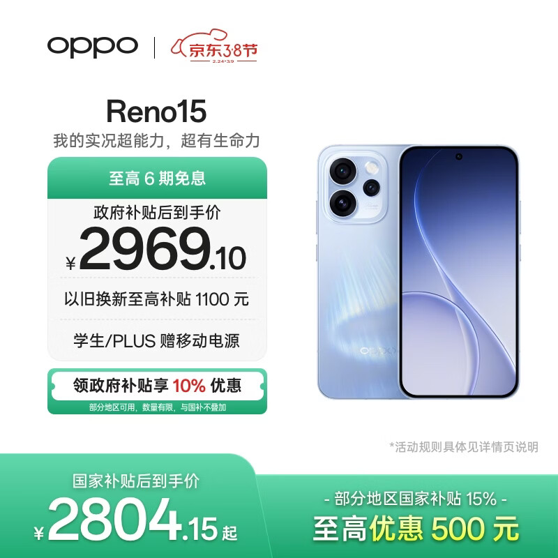 OPPO Reno15 16GB+256GB 极光蓝 2亿像素 实况拼图 5G智能小直屏 学生游戏 AI拍照手机 新品国家补贴
