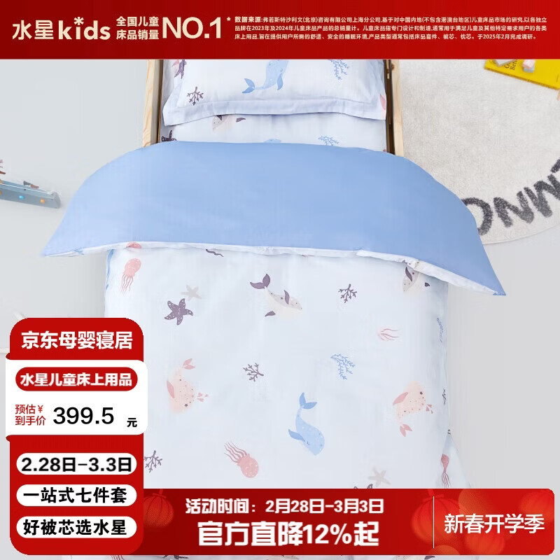 水星儿童(MERCURY Kids)水星家纺 幼儿园抗菌七件套(海蓝色/海洋)0.6-1m床 婴幼儿A类