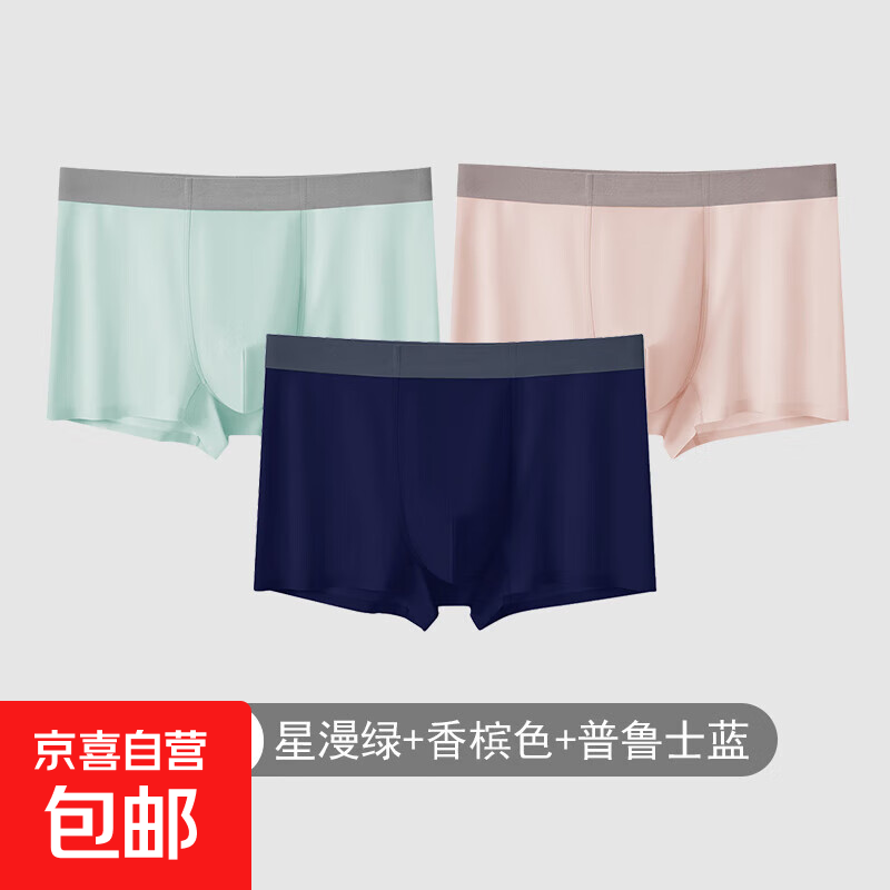 7A抑菌男士内裤舒适透气速干平角裤短裤夏季凉爽冰丝内裤男生 星漫绿+香槟色+普鲁士蓝 3条 L 【推荐90-110斤]