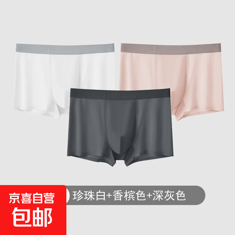 7A抑菌男士内裤舒适透气速干平角裤短裤夏季凉爽冰丝内裤男生 珍珠白+香槟色+深灰色 3条 2XL 【推荐130-150斤】