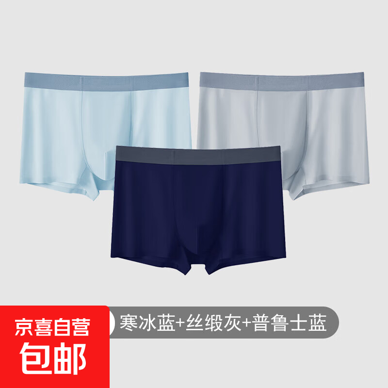 7A抑菌男士内裤舒适透气速干平角裤短裤夏季凉爽冰丝内裤男生 寒冰蓝+丝缎灰+普鲁士蓝 3条 L 【推荐90-110斤]