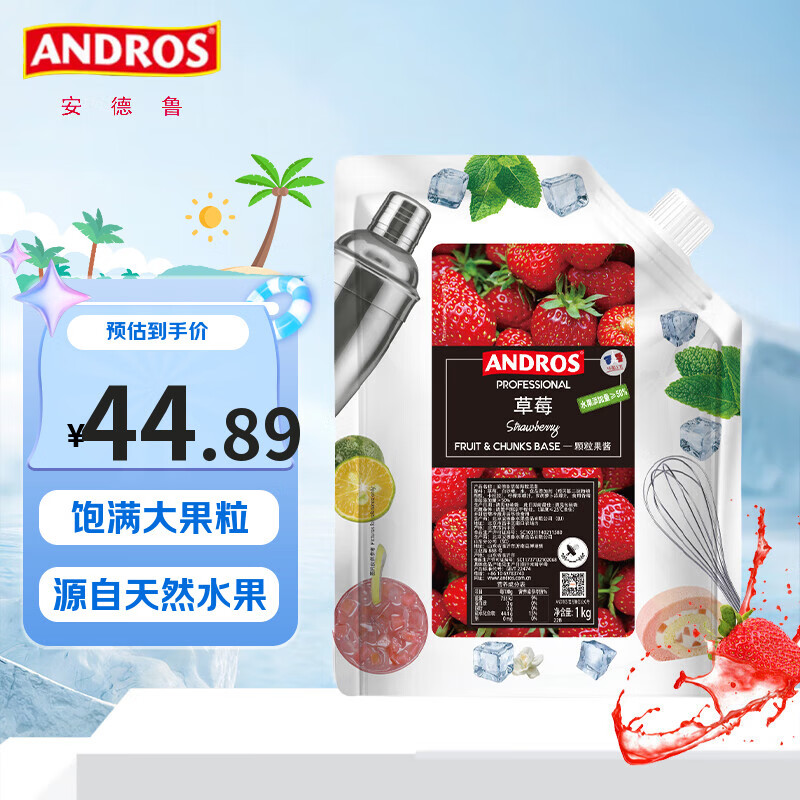 ANDROS安德鲁草莓果酱1kg 颗粒果粒酱商用家用烘焙原料面包吐司月饼馅料