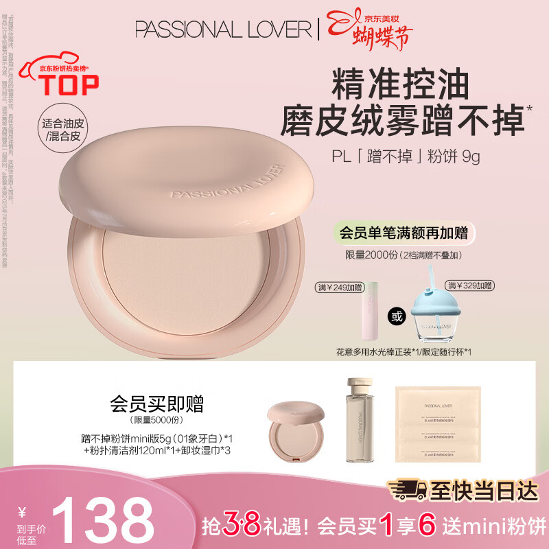 恋火(Passional Lover)PL粉饼蹭不掉定妆补妆散粉控油遮瑕持久防水不脱妆细腻9g 象牙白