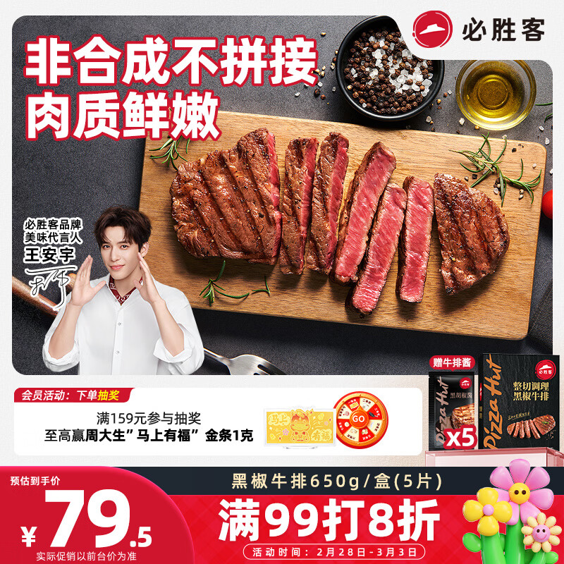 必胜客必胜优选调理黑椒牛排650g黑金礼盒 烧烤火锅早餐健身减脂开学