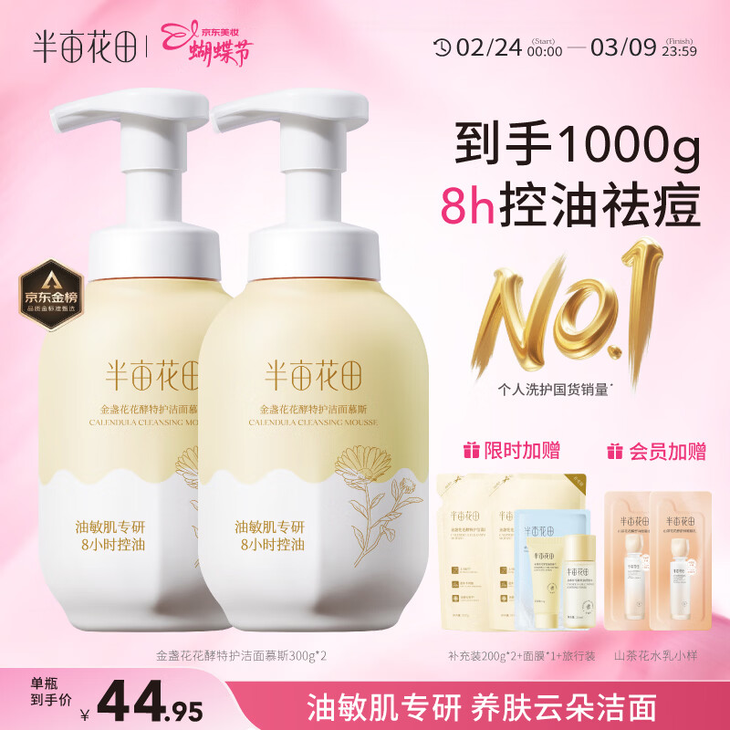 半亩花田金盏花洁面慕斯氨基酸洗奶控油净痘去黑头敏感肌男女士送礼物